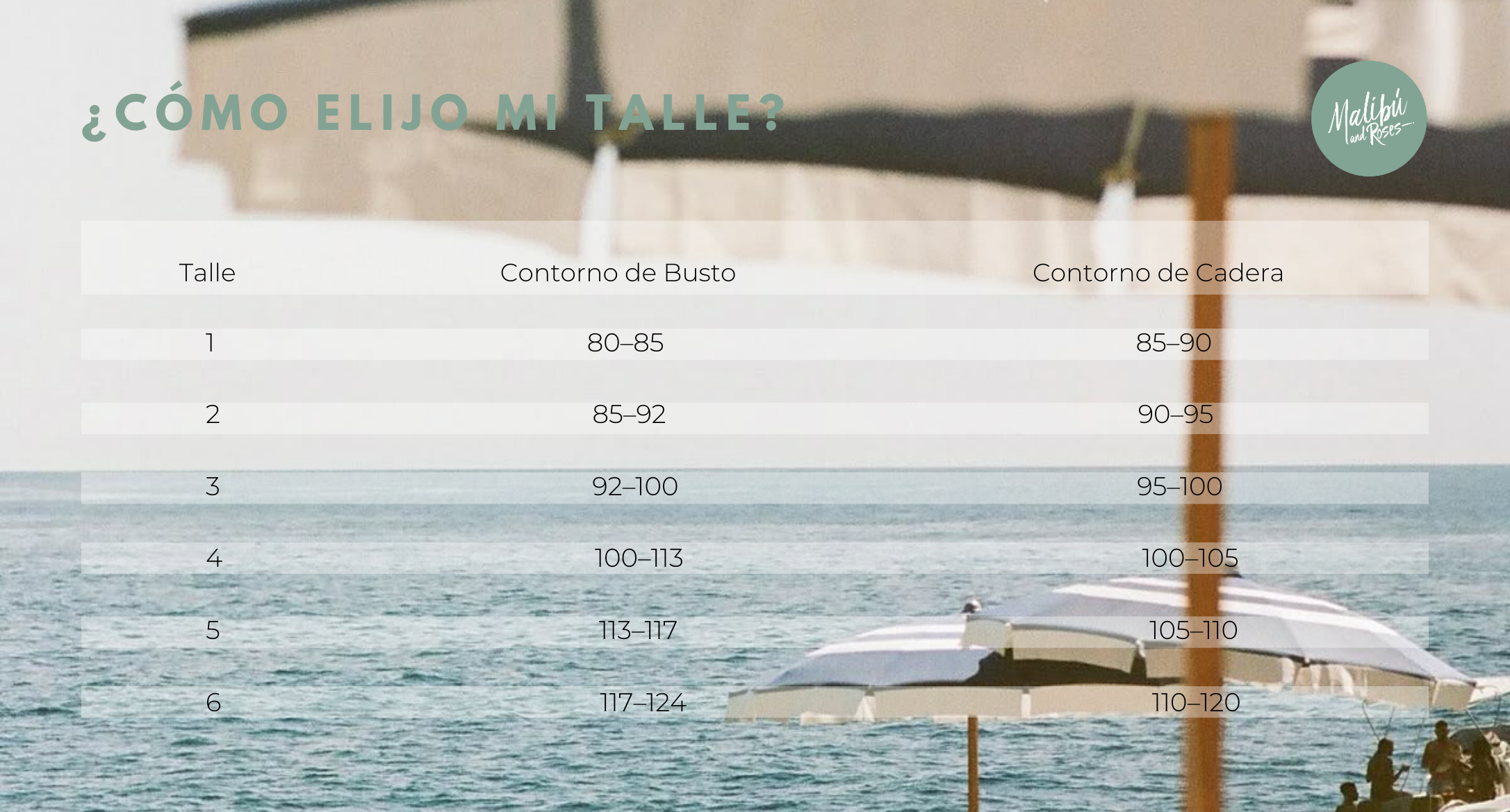 Estas dos medidas son las que te van a ayudar para decidir tu talle más cómodo: CONTORNO DE BUSTO: Medir pasando la cinta métrica alrededor de tu torso, por la zona de mayor volúmen de tu pecho | CONTORNO DE CADERA: Pasar la cinta métrica alrededor de tu cola, tomando la medida más ancha de tu cadera.